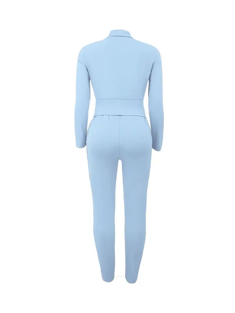Women's Suits Fitted Solid Long Sleeve Tops & High Waist Stretch Pants
